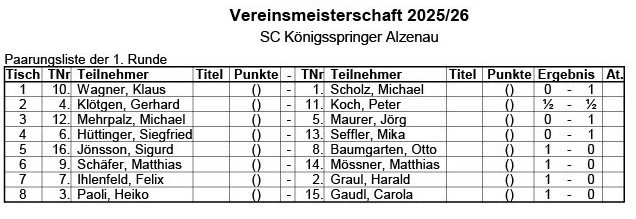 Die 1. Runde unserer Vereinsmeisterschaft ist abgeschlossen. Dabei gab es die ersten, kleineren Überraschungen.